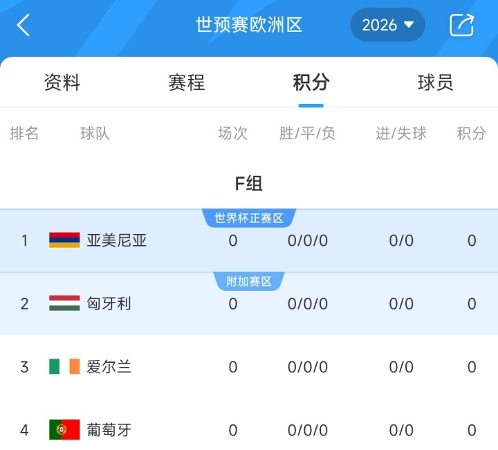 葡萄牙队将在9月世预赛先后客场挑战亚美尼亚与匈牙利。本届预选赛葡萄牙被分在F组,同组对手包括亚美尼亚、匈牙利及爱尔兰。
